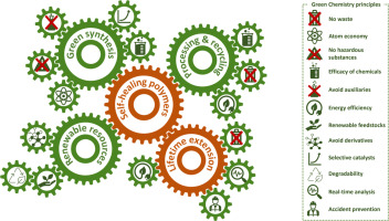 Permanent polymer networks present an important sustainability challenge. Irreversible covalent crosslinks impart these materials excellent mechanical properties, thermal and chemical resistance, yet also render them difficult to repair and to recycle. Self-healing mechanisms can extend the lifetime of thermosets and elastomers, improving their durability and making their lifecycle more sustainable. In addition to the lifetime extension, this paper reviews the sustainability of self-healing polymers from a holistic point of view. The entire lifecycle of self-healing polymers is critically assessed with reference to the green chemistry principles and sustainable development. The relation between the self-healing chemistries and the sustainability aspects of each of the phases of the lifecycle are discussed, starting from the feedstocks, monomer functionalisation and polymer synthesis, to processing and manufacturing as well as end-of-life considerations, i.e. recycling or (bio)degradation. The review provides a toolbox for the development of more sustainable thermosets, elastomers and their composites. It is of utmost importance to consider the entire lifecycle of self-healing materials, derived products and – by extension – any material or product. The self-healing ability and often related recyclability should primarily reduce the amount of new materials that are necessary to fulfill societal needs, by extending the lifetime of products and maximizing reprocessing into new products. Increasing healing efficiency and the number of healing cycles improves the overall environmental impact relative to the extended service lifetime. Renewable resources derived from biomass, recycling processes or waste streams should be the first choice to create new self-healing polymers. Finally, biodegradability can be considered as a complementary end-of-life scenario upon accidental loss of self-healing polymer to the environment, provided that the biodegradation does not start under the prospected use conditions of the self-healing polymers and products, but can be postponed until contact with stimuli present in the environment.